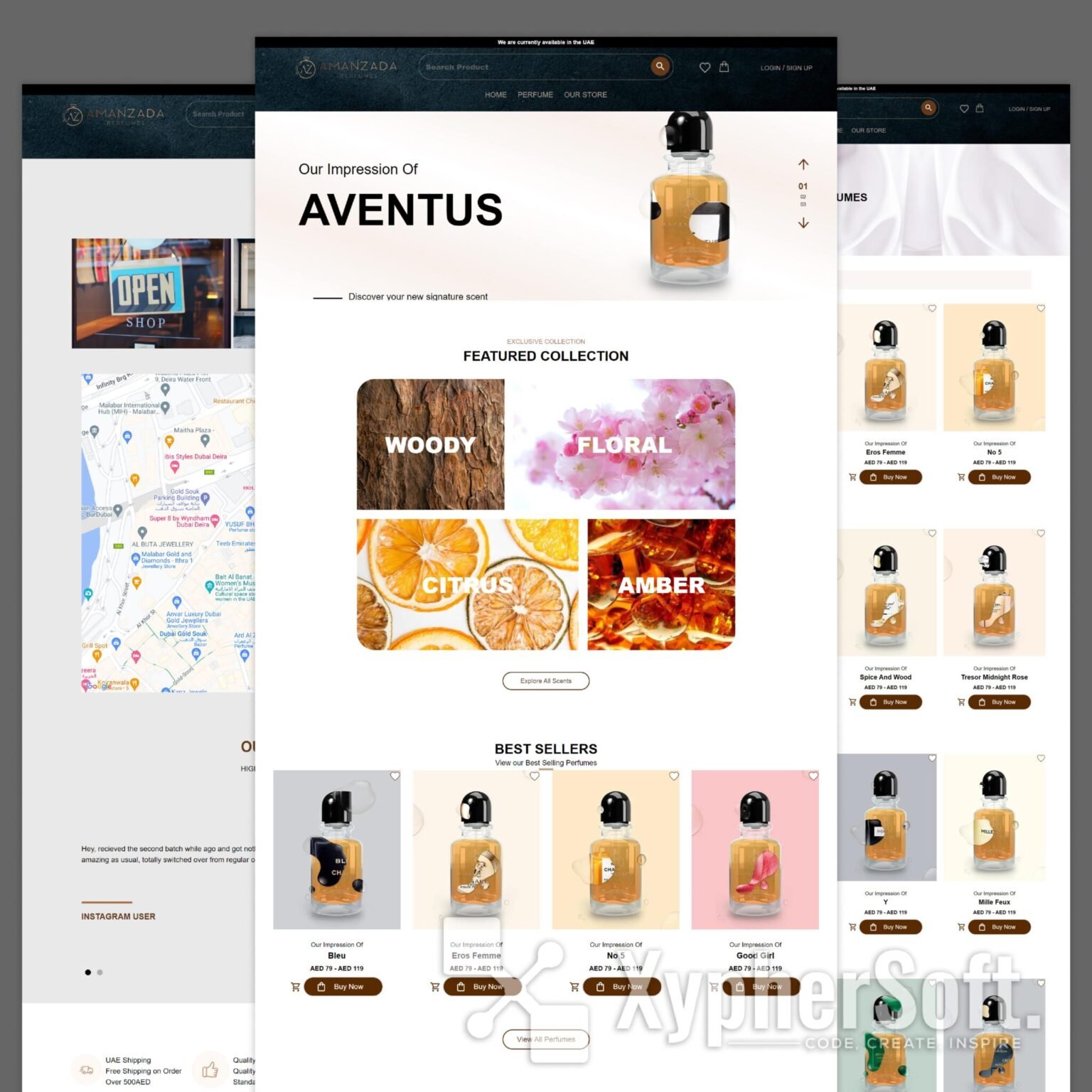 - Clear storytelling: Elevated the âAbout Usâ section by highlighting the Amanzada family heritage, CEO roles (Haseeb, Saleem, Rashid), and their mission to democratize designer-level fragrances.